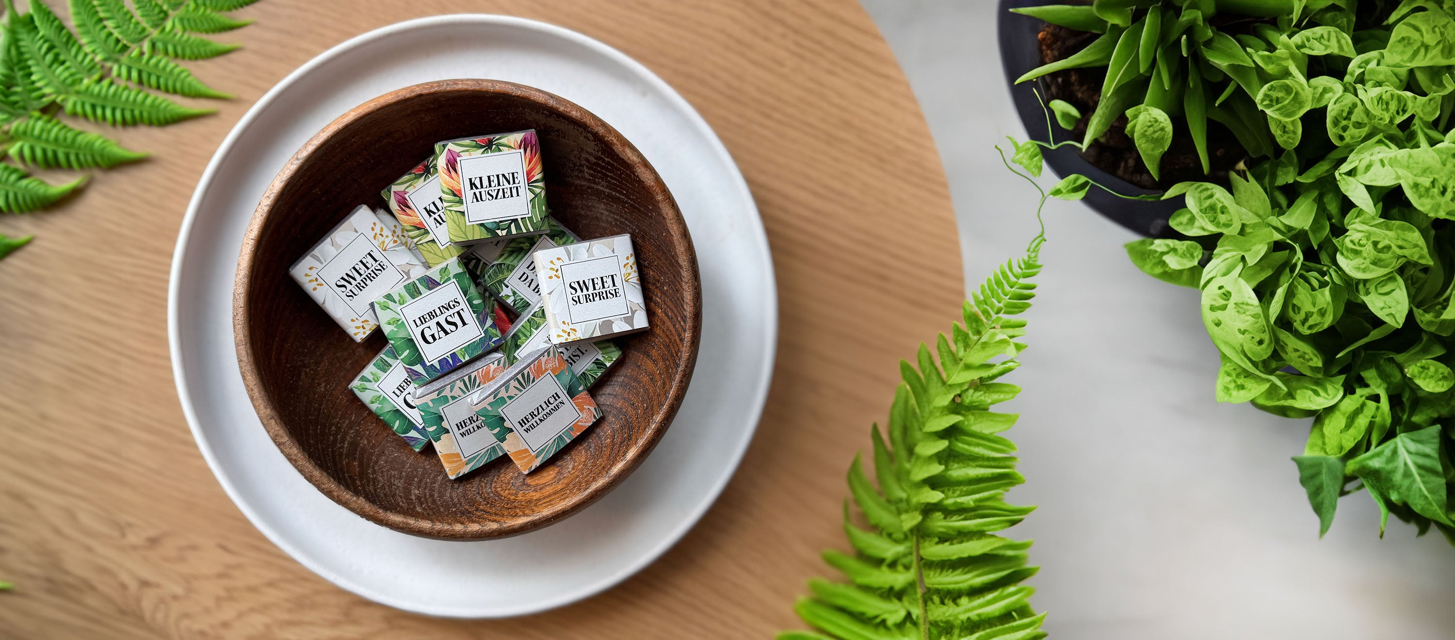 Schon länger statten wir regelmäßig Hotels, Firmen, Cafés und Veranstaltungen mit unseren nachhaltigen Schokoladen aus, denn wir freuen uns über jede Möglichkeit, Plastik und tierische Rezepturen durch menschen-, tier- und umweltfreundlichere Alternativen zu ersetzen. So gründeten wir 2023 PRESENT & FUTURE für allerlei süße, nachhaltige Aufmerksamkeiten im Firmen- und Veranstaltungsbereich.